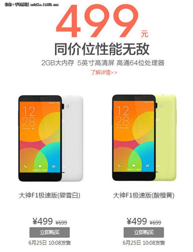 另外大神F2移动版也将会在6月25日同步开抢,大神F2移动版爱用8核CPU,拥有5.5英寸720P屏幕,拥有2GB+16GB的内存组合,售价仅为699元。