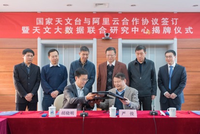 2017 年 1 月 22 日,中国科学院国家天文台与阿里云正式成立“天文大数据联合研究中心”,双方在北京举办了合作协议签字暨研究中心揭牌活动。阿里云将作为天文台云计算大数据领域唯一战略合作伙伴,共同推进天文学科研和科普教育工作。