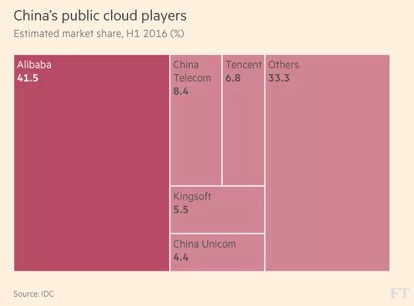 权威研究机构IDC的统计数据显示,阿里云在中国市场的份额几乎是其他所有追随者的总和,其中第二位中国电信份额为8.4%,腾讯为6.8%。