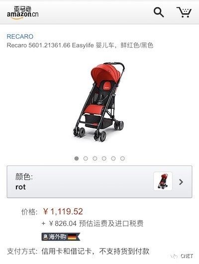 譬如,一个RecaroEasylife 婴儿车,在亚马逊海外购售价1119.52元,在海淘网站当中还是有价格优势的。