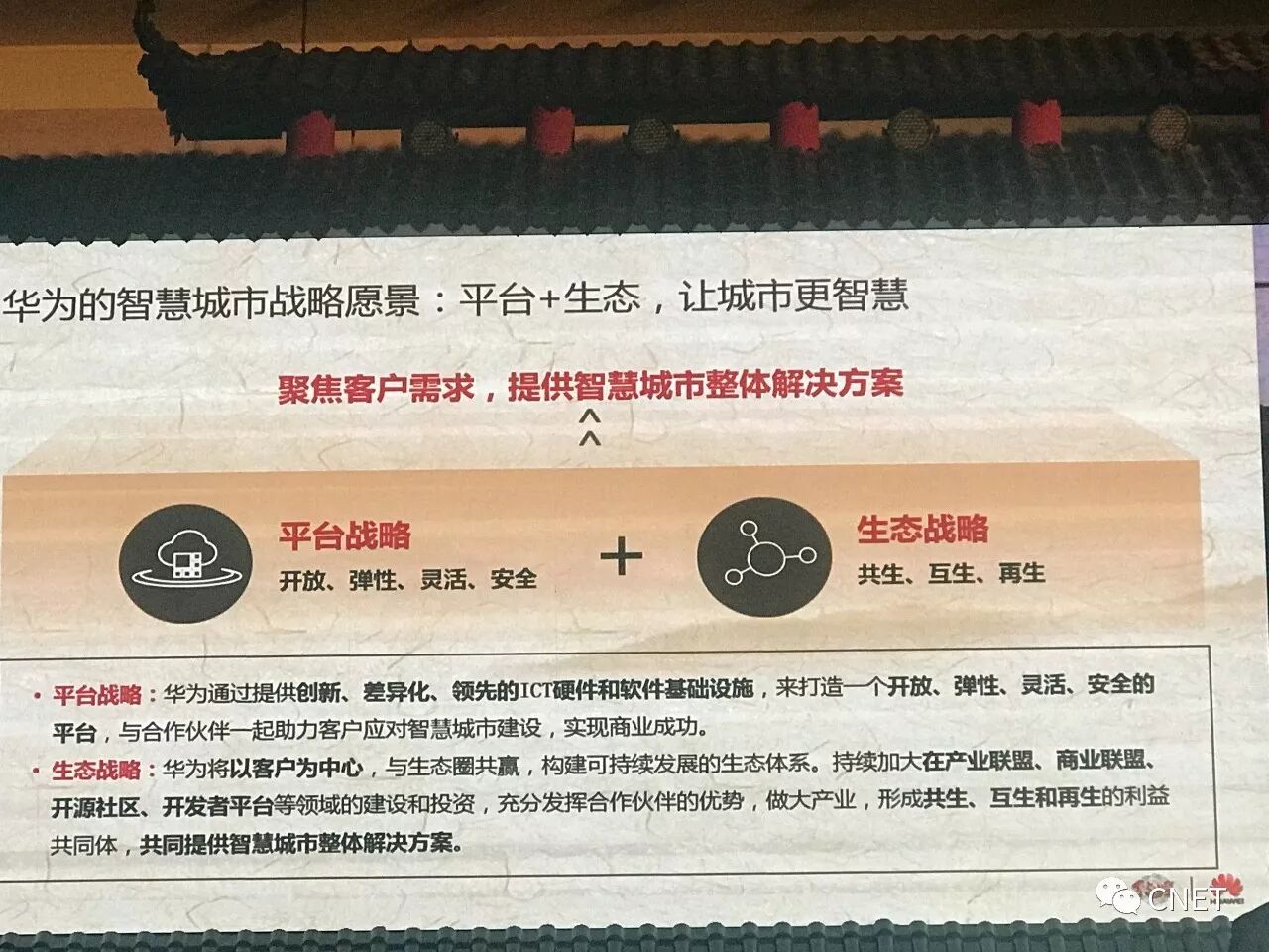 对于智慧城市建设,华为的定位非常清晰,即通过新ICT打造智慧城市神经系统。