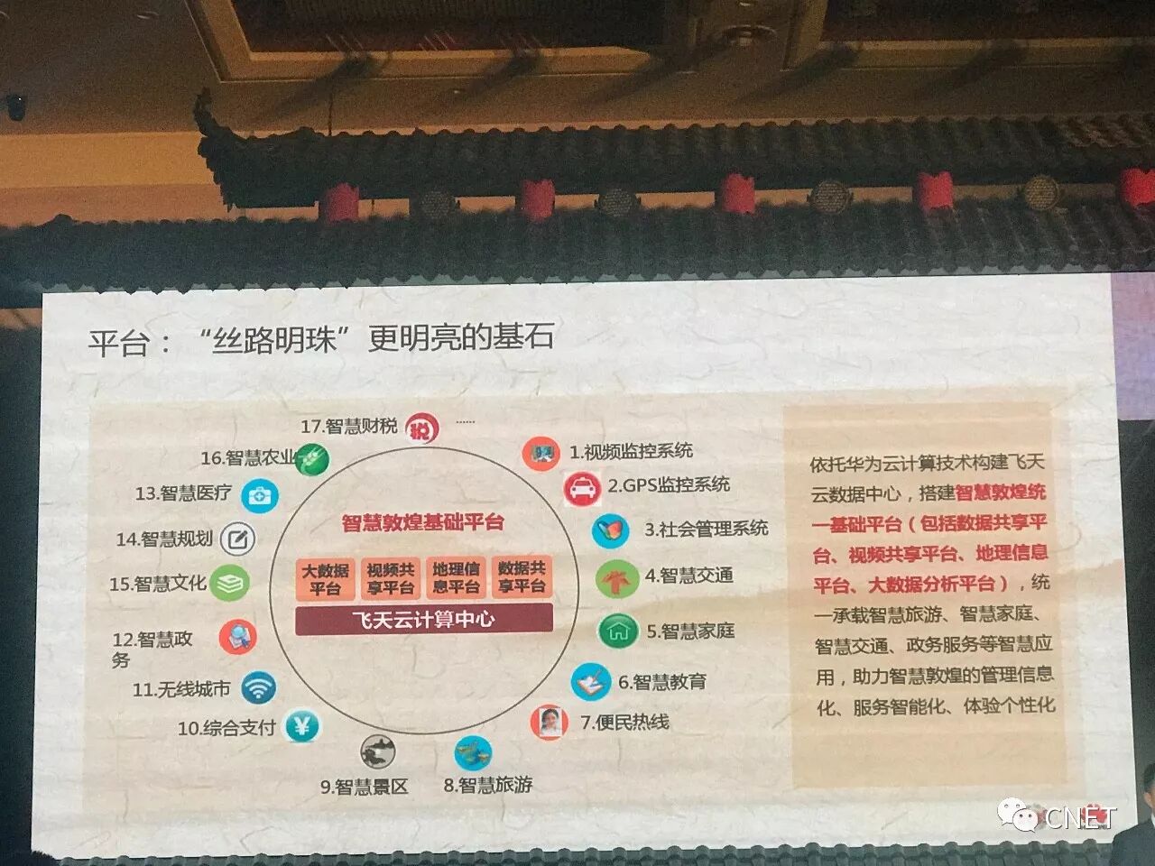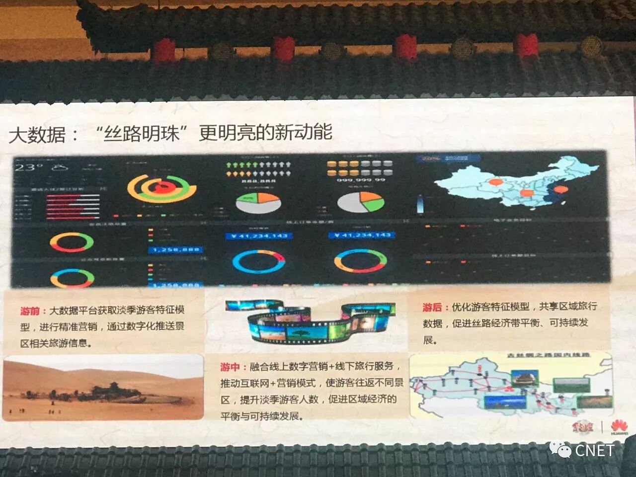 华为解决了这些难题。2016年3月,敦煌市与华为签署战略合作协议,启动以智慧旅游为核心的智慧敦煌建设,计划依托集云存储、云计算于一体的“飞天”云计算中心,推动信息化基础设施、市民服务、游客服务、政府治理等方面建设。时隔一年,敦煌交出一份可观的答卷:2016年敦煌游客年增长30%以上,旅游产业GDP占比超过50%。